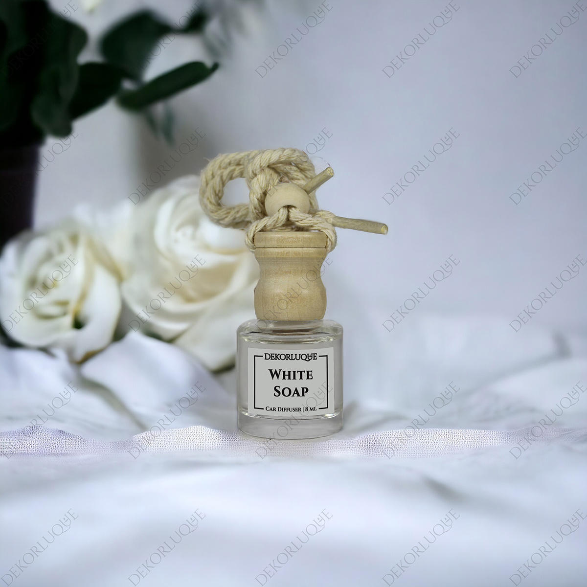 DEKORLUQUE Beyaz Sabun Araç Kokusu, Dekoratif Asmalı Araba Kokusu, İpli Araç Parfümü, Dolap Kokusu 8 ml